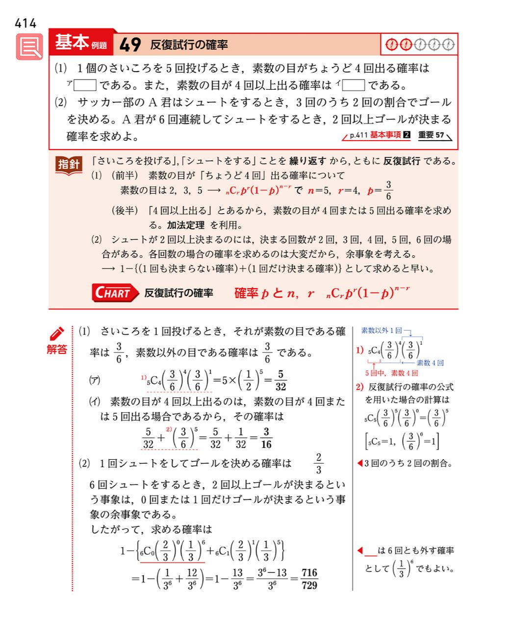 ちなみに、右画像に示してある青チャート式数学の問題、基本例題49。