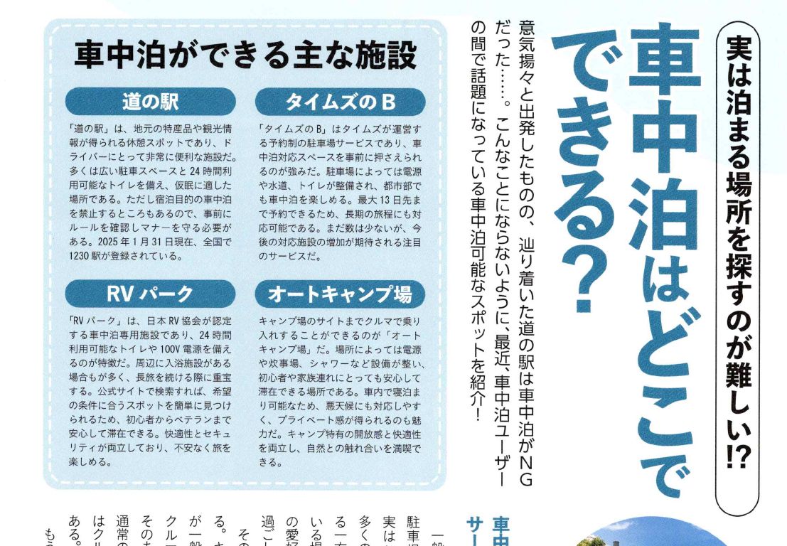 雑誌内には車中泊を満喫するユーチューバーも紹介されています…。