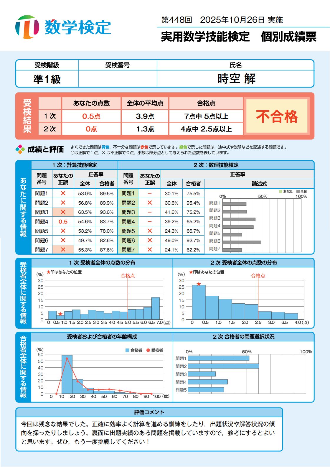 右に示すように、1次が $ 0.5 $ 点。そして2次は $ 0 $ 点でした。_| ̄|○
