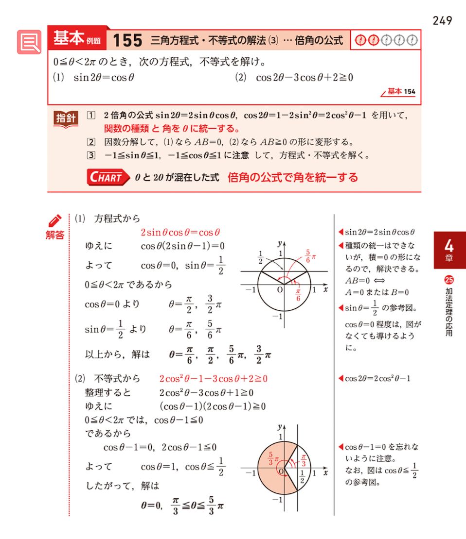 $ 0 \leqq \theta \leqq 2 \pi $ のとき、次の不等式を解きなさい。
