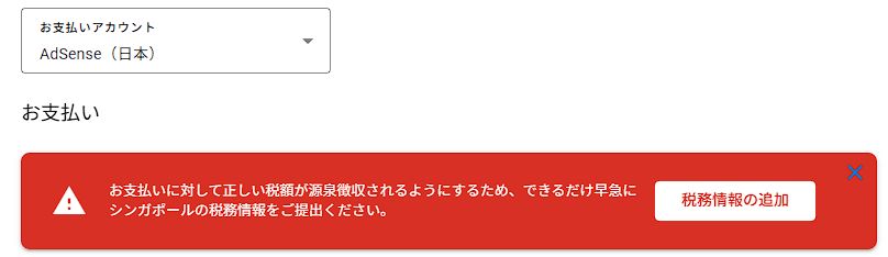 ・AdSenseでの税務情報の設定方法 シンガポール編
