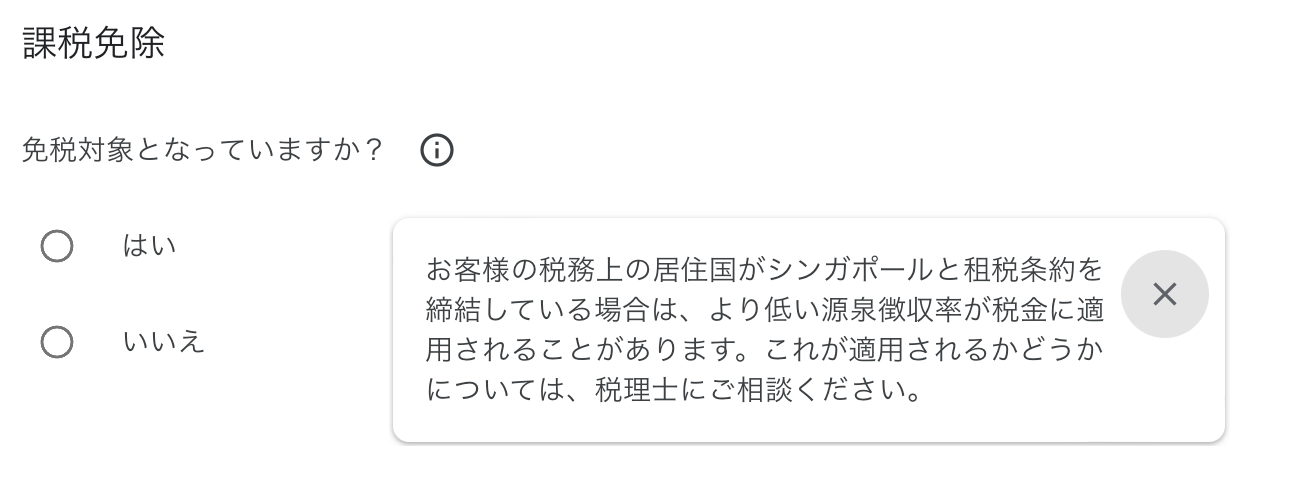 ・AdSenseでの税務情報の設定方法 シンガポール編