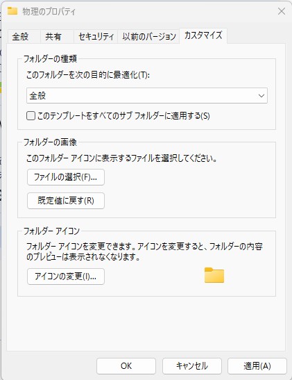 でもね。「フォルダーの種類」はそもそも「全般」になってるし、エクスプローラーの